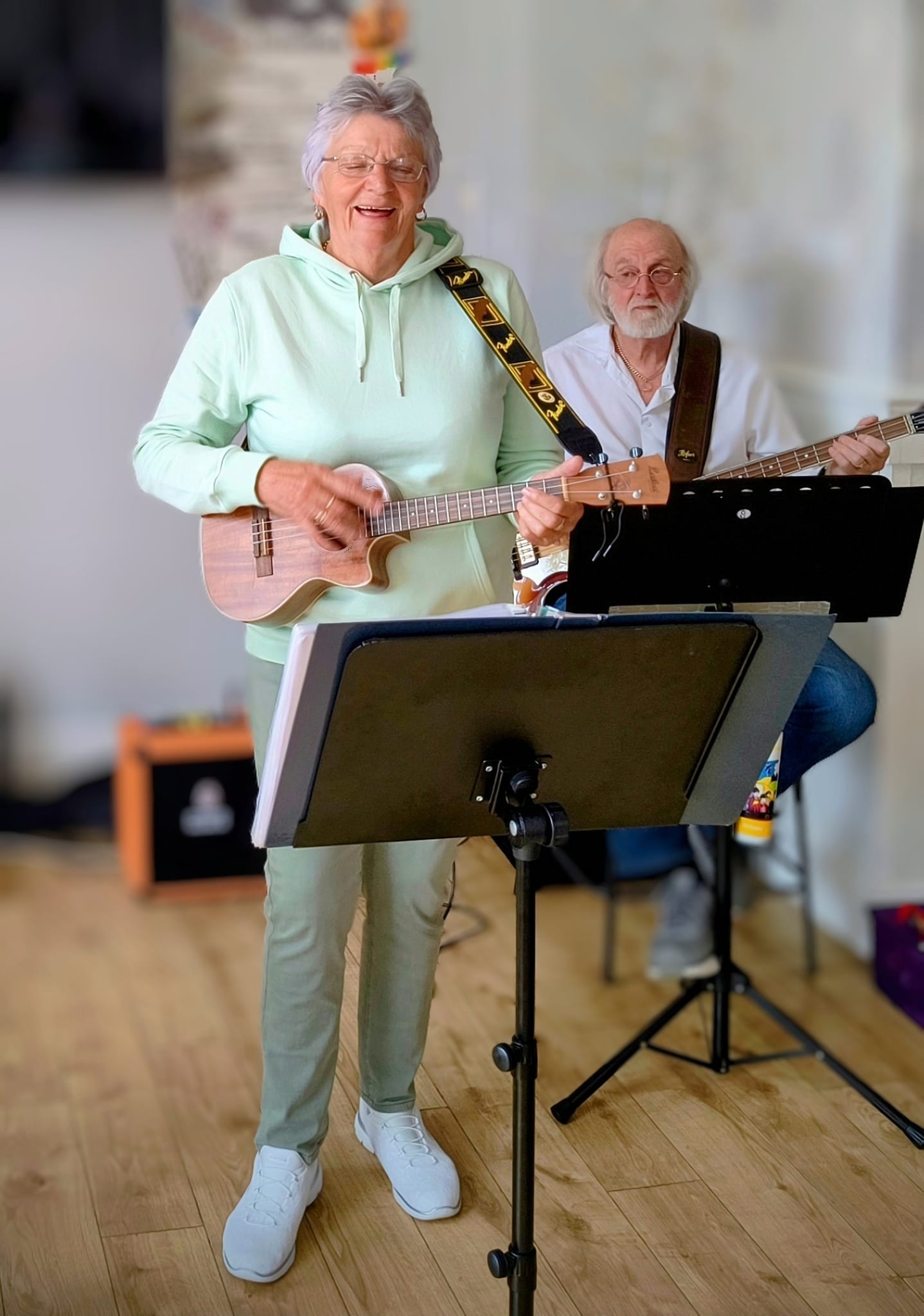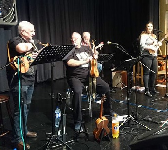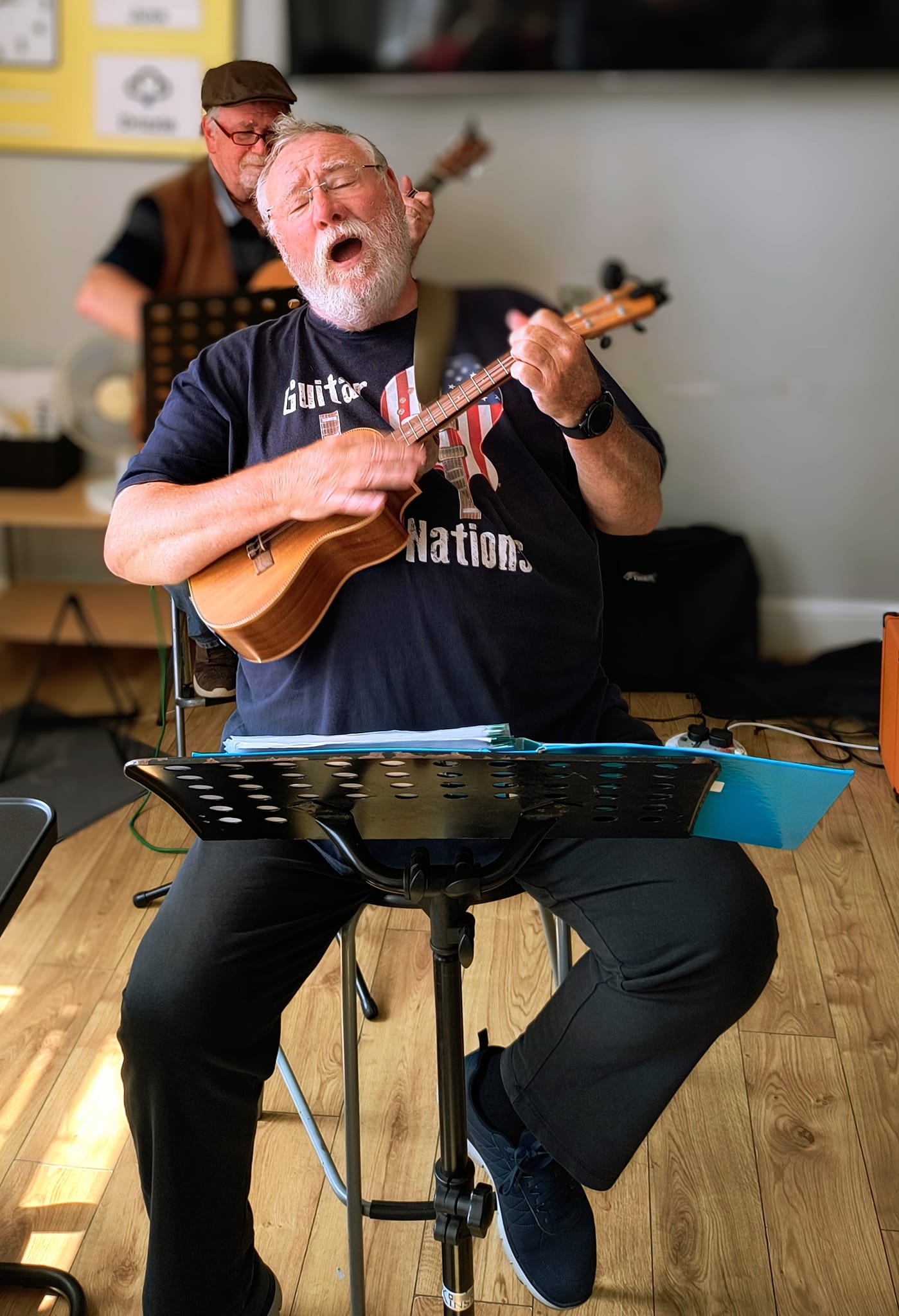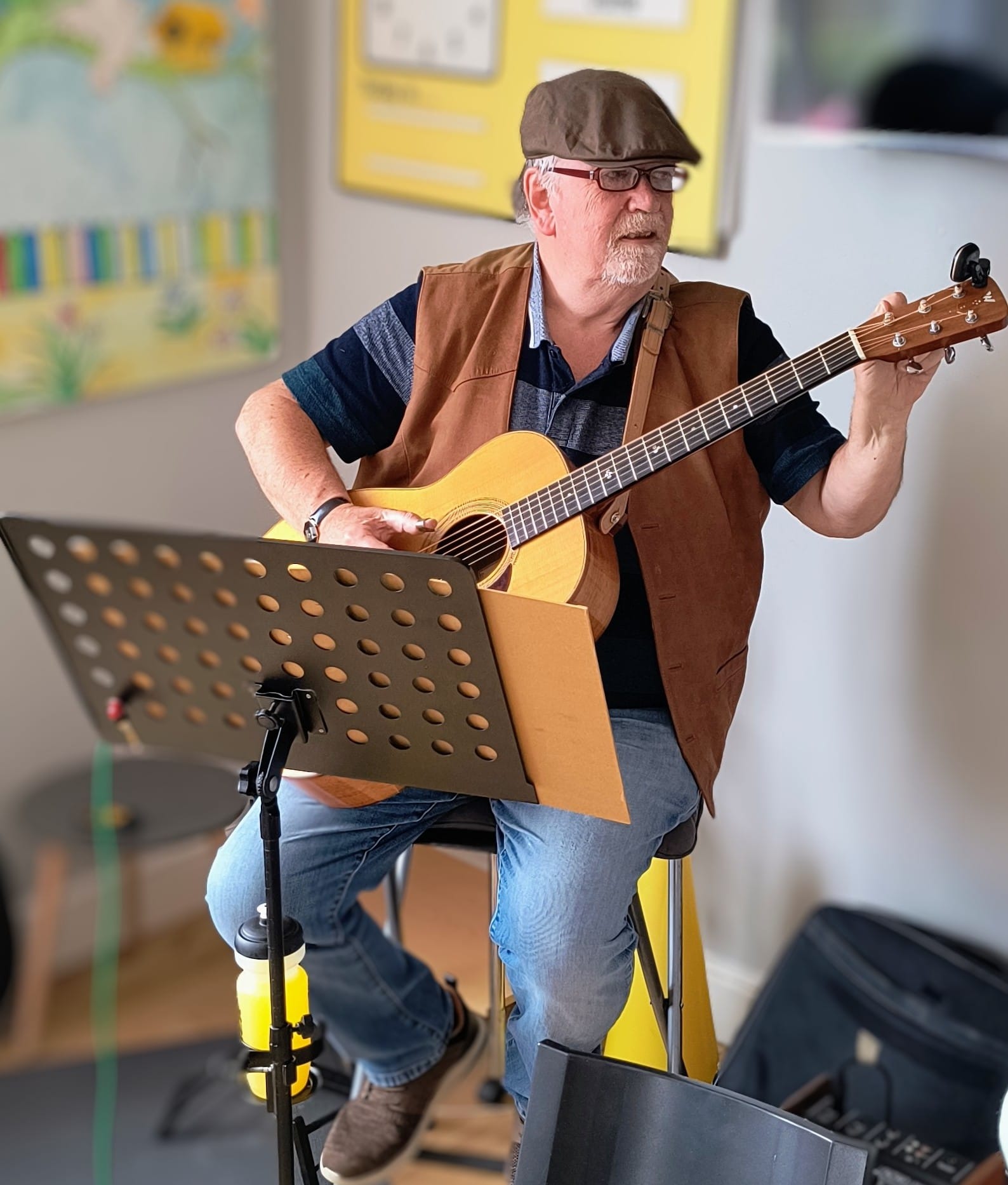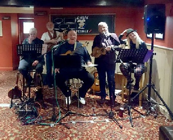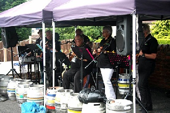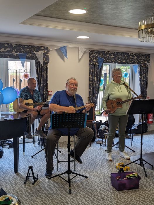 | Trev; odd job man and spare musician for emergencies. Trev took most of these photos and runs our facebook page. | Here we are on Father's day avoiding our children by hiding in a care home. |
